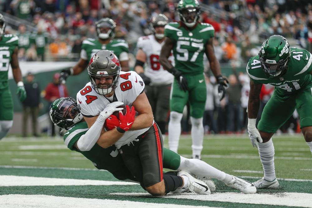 The Jets took a two-touchdown lead on Ty Johnson’s 1-yard run that capped their opening drive of the second half. After Brown’s exit and Brady’s TD to Brate, Ryan Succop kicked a 27-yard field goal to cut New York’s lead to 24-20 with 7:36 left.