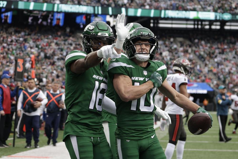 Brandin Echols intercepted Brady on Tampa Bay’s last possession of the first half and returned it 30 yards to the Jets 48. New York turned it into points on Eddy Pineiro’s 51-yard field goal with 1 second left.