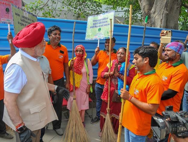 The minister led the cleanliness drive at Princess Park on Copernicus Marg, New Delhi. Sanitation workers, students, and residents of the area along with senior officials from the Ministry of Housing & Urban Affairs joined the drive.
